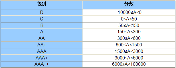 二、“诚信值”级别标准